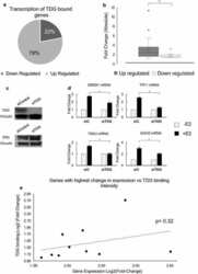 - Fig. 1 Global analysis of E2-dependent TDG localization. a MCF7 cells were treated with 100 nM of E2 (45 min) and ChIP-qPCR was performed using TDG antibody. Region used as negative control shows low level of TDG binding in ChIP-Seq data with no change in levels after E2 treatment. (* p value < 0.05, error bars represent standard deviation of the mean, n > 2). b Sites of E2-dependent TDG binding were mapped to the annotated genome using CEAS. c Sites of ER binding (+/- 1000 bp) overlaid with TDG binding signal, showing strong relationship between location of TDG binding and ER binding at these regions