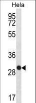 - WFDC1 Antibody (C-term H163) western blot of HeLa cell line lysates (35 ug/lane). The WFDC1 antibody detected the WFDC1 protein (arrow).