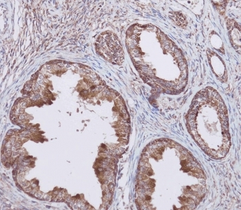 - IHC testing of FFPE human prostate tissue with WFDC1 antibody. HIER: steam section in pH9 EDTA for 20 min and allow to cool prior to staining.