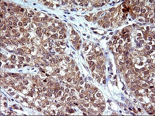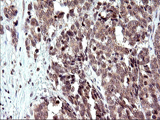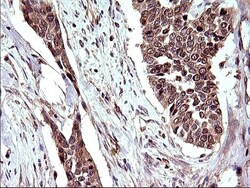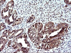 - Immunohistochemical staining of paraffin-embedded Adenocarcinoma of Human endometrium tissue using anti-COX4NB mouse monoclonal antibody. (Heat-induced epitope retrieval by 10mM citric buffer, pH6.0, 120°C for 3min, TA507108)