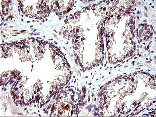 - Immunohistochemical staining of paraffin-embedded human prostate tissue within the normal limits using anti-COX4NB mouse monoclonal antibody. (Heat-induced epitope retrieval by 10mM citric buffer, pH6.0, 120°C for 3min, TA507108)