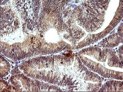 - Immunohistochemical staining of paraffin-embedded Adenocarcinoma of Human colon tissue using anti-COX4NB mouse monoclonal antibody. (Heat-induced epitope retrieval by 10mM citric buffer, pH6.0, 120°C for 3min, TA507108)