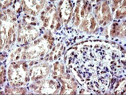 - Immunohistochemical staining of paraffin-embedded human Kidney tissue within the normal limits using anti-COX4NB mouse monoclonal antibody. (Heat-induced epitope retrieval by 10mM citric buffer, pH6.0, 120°C for 3min, TA507108)