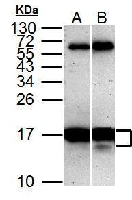 - Sample (30 ug of whole cell lysate) A: HeLa B: HeLa cells with tumicamycin trearment 8hr 15% SDS PAGE GTX127375 diluted at 1:5000