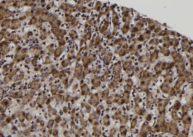 - Immunohistochemistry analysis of paraffin-embedded MAGEA12 in human liver tissue. Antigen retrieval was performed using citrate buffer. Samples were blocked with blocking buffer (1.5 hr, 22°C), incubated with MAGEA12 polyclonal antibody (Product # PA5-104286) using a dilution of 1:100 (1.5 hr, 22°C), followed by HRP conjugated goat anti-rabbit.