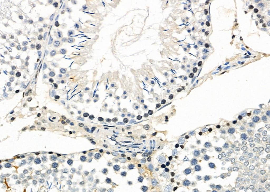 - Immunohistochemistry analysis of MAGEA12 in rat testis tissue. The sample was formaldehyde fixed and a heat mediated antigen retrieval step in citrate buffer was performed. Samples were incubated with MAGEA12 polyclonal antibody (Product # PA5-104286) using a dilution of 1:100 (4°C overnight) followed by HRP conjugated anti-Rabbit secondary antibody.