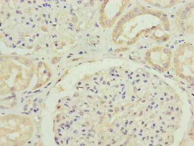 - Immunohistochemical analysis of FBXO24 in paraffin embedded human kidney tissue using a FBXO24 polyclonal antibody (Product # PA5-97737) at a dilution of 1:100.