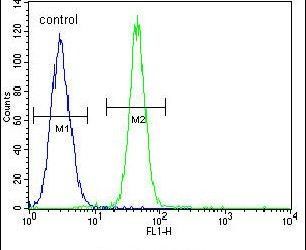 - Flow cytometry analysis of A549 cells using a FBXO24 polyclonal antibody (Product # PA5-24487) (right) compared to a negative control cell (left) at a dilution of 1:10-50, followed by a FITC-conjugated goat anti-rabbit antibody