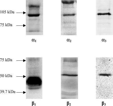 - MA3-915 detects sodium/potassium ATPase from human, monkey, bovine, sheep, canine, rabbit, guinea pig, mouse and rat tissue. This antibody is specific for the alpha-3 subunit. MA3-915 has been successfully used in Western blot and immunohistochemical procedures. By Western blot, this antibody detects an ~110 kDa protein representing the alpha-3 subunit of the sodium/potassium ATPase from canine skeletal muscle extract. Immunohistochemical staining of sodium/potassium ATPase in rat retina with MA3-915 yields a pattern consistent with plasma membrane localization. The MA3-915 antigen is canine cardiac microsomes.