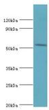 - Western blot All lanes: Hyaluronidase-2 antibody at 4µg/ml + Mouse lung tissue Secondary Goat polyclonal to rabbit IgG at 1/10000 dilution Predicted band size: 54 kDa Observed band size: 54 kDa
