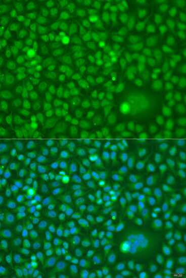 - Immunocytochemistry-Immunofluorescence analysis of CDK10 was performed in U2OS cells using CDK10 Polyclonal Antibody (Product # PA5-96192).