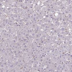- Immunohistochemical analysis of GLTP in human liver using GLTP Polyclonal Antibody (Product # PA5-63306) shows no cytoplasmic positivity in hepatocytes as expected.