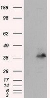 - HEK293T cells were transfected with the pCMV6-ENTRY control (Left lane) or pCMV6-ENTRY PLEK (RC203780, Right lane) cDNA for 48 hrs and lysed. Equivalent amounts of cell lysates (5 µg per lane) were separated by SDS-PAGE and immunoblotted with anti-PLEK. Positive lysates LY419171 (100 µg) and LC419171 (20 µg) can be purchased separately from OriGene.