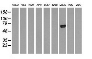 - Western blot analysis of extracts (35 µg) from 9 different cell lines by using anti-ARHGAP25 monoclonal antibody.