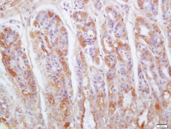 - Formalin-fixed and paraffin embedded mouse stomach tissue labeled with Rabbit Anti-Gastrokine 1 Polyclonal Antibody, Unconjugated (bs-14441R) at 1:200 followed by conjugation to the secondary antibody and DAB staining.
