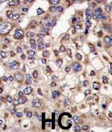 - Immunohistochemistry: formalin-fixed and paraffin-embedded human hepatocarcinoma tissue stained with ARG54864 anti-MTMR4 antibody.