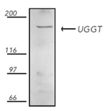 - Western blot analysis of rat brain tissue extract, probed with UGGT, pAb.