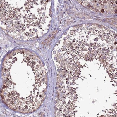 - Immunohistochemistry-Paraffin: GPN3 Antibody [NBP2-30665] - Staining of human testis shows nuclear and cytoplasmic positivity in cells in seminiferous ducts.