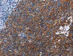 - Immunohistochemistry of paraffin-embedded Human cervical cancer using ETHE1 Polyclonal Antibody at dilution of 1:20.