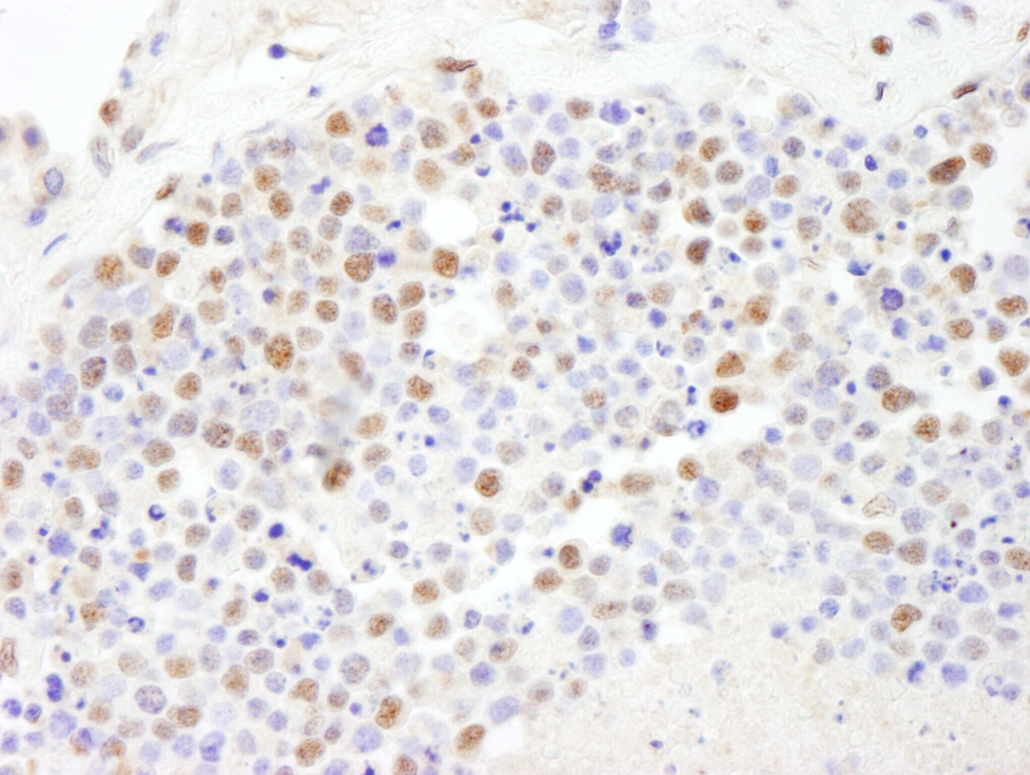- Detection of human PolD3/p66 by immunohistochemistry. Sample: FFPE section of human small cell lung cancer. Antibody: Affinity purified rabbit anti- PolD3/p66 (Cat. No. A301-243A Lot1) used at a dilution of 1:1,000 (1µg/ml). Detection: DAB.