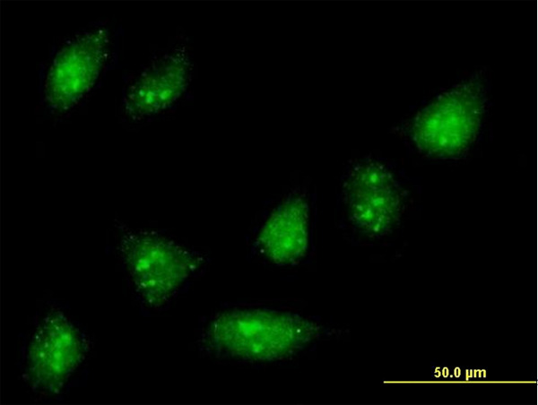 - Immunofluorescence of purified MaxPab antibody to ZNF576 on HeLa cell. [antibody concentration 10 ug/ml]