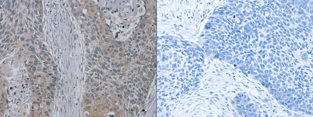 - The image on the left is immunohistochemistry of paraffin-embedded Human esophagus cancer tissue using (RASA4 Antibody) at dilution 1/20, on the right is treated with fusion protein. (Original magnification: ?200)