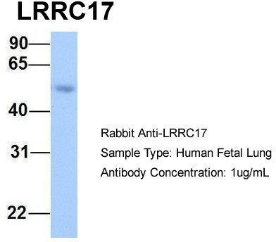 - Host: Rabbit; Target Name: LRRC17; Sample Tissue: Human Fetal Lung; Antibody Dilution: 1.0 ug/ml