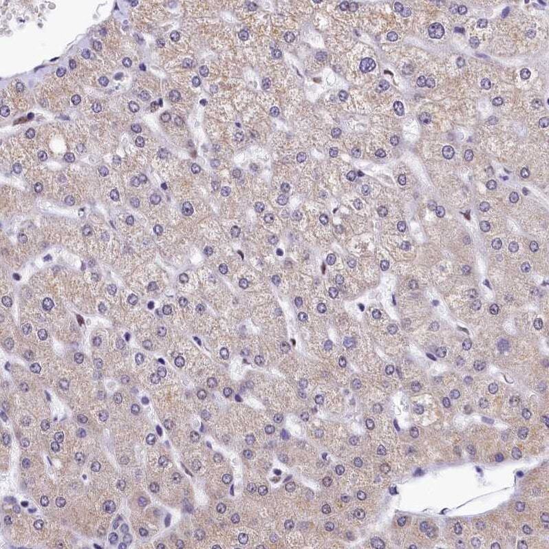 - Immunohistochemical analysis of HECTD4 in human liver using HECTD4 Polyclonal Antibody (Product # PA5-59413) shows no nuclear positivity in hepatocytes as expected.