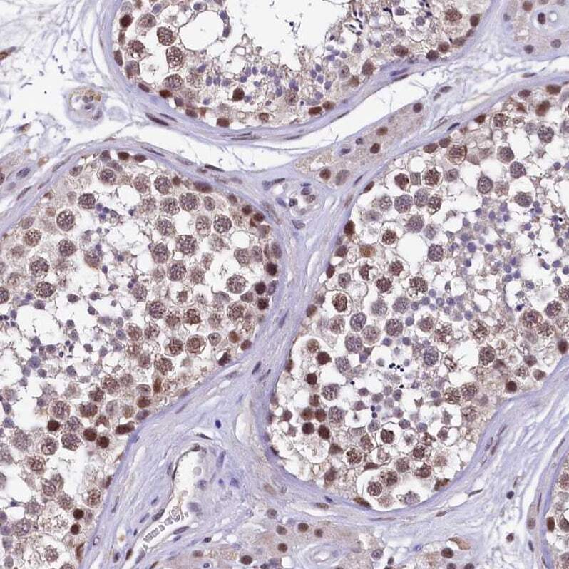 - Immunohistochemical analysis of HECTD4 in human testis using HECTD4 Polyclonal Antibody (Product # PA5-59413) shows moderate nuclear positivity in cells in seminiferous ducts.