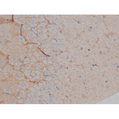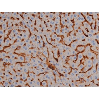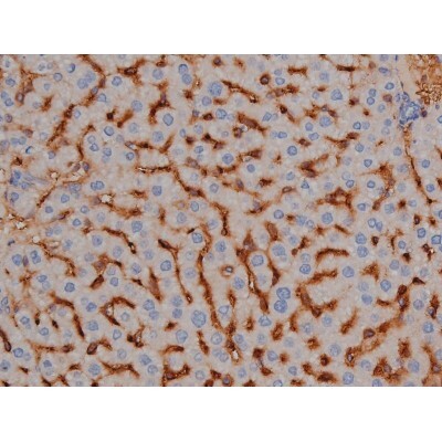 - 1:200 staining mouse liver tissue by IHC-P. The tissue was formaldehyde fixed and a heat mediated antigen retrieval step in citrate buffer was performed. The tissue was then blocked and incubated with the antibody for 1.5 hours at 22°C. An HRP conjugated goat anti-rabbit antibody was used as the secondary.