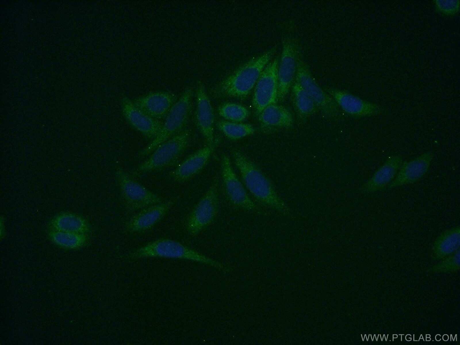 - Immunofluorescent analysis of ( -20°C Ethanol ) fixed HepG2 cells using 16242-1-AP (SDSL antibody) at dilution of 1:50 and Alexa Fluor 488-conjugated AffiniPure Goat Anti-Rabbit IGG (H+L).