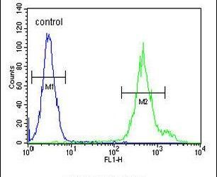- Flow cytometry analysis of 293 cells using a KLC3 polyclonal antibody (Product # PA5-25268) (right) compared to a negative control cell (left) at a dilution of 1:10-50, followed by a FITC-conjugated goat anti-rabbit antibody
