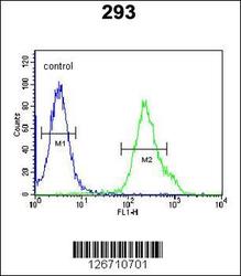 - KCTD21 Antibody (C-term) (Cat. #AP5408b) flow cytometric analysis of 293 cells (right histogram) compared to a negative control cell (left histogram).FITC-conjugated goat-anti-rabbit secondary antibodies were used for the analysis.