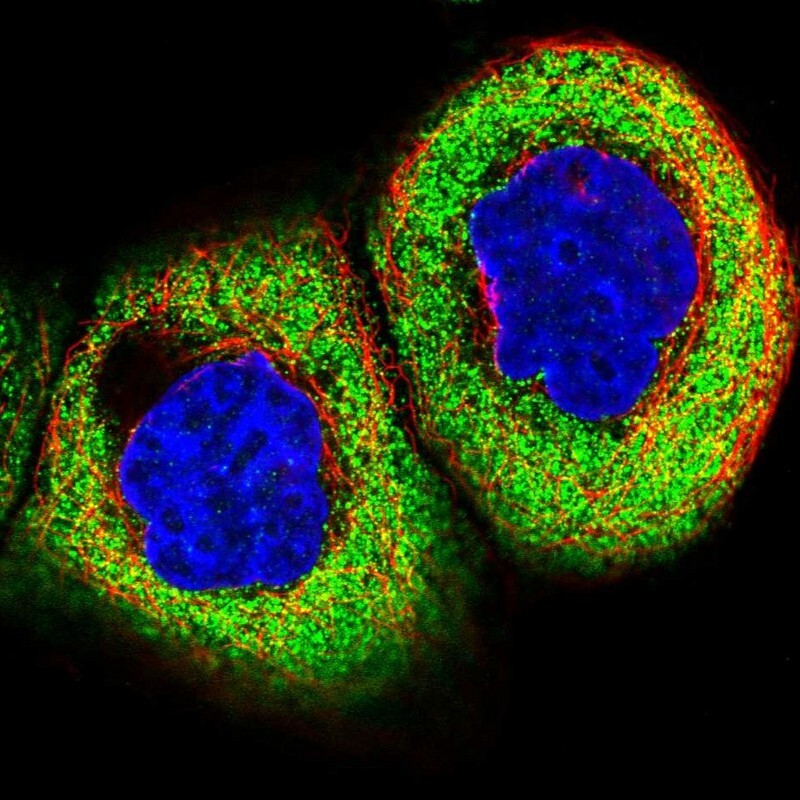 - Immunofluorescent staining of human cell line A-431 shows localization to cytosol.