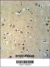 - KCTD21 Antibody (C-term) immunohistochemistry analysis in formalin fixed and paraffin embedded human brain tissue followed by peroxidase conjugation of the secondary antibody and DAB staining. This data demonstrates the use of the KCTD21 Antibody (C-term) for immunohistochemistry. Clinical relevance has not been evaluated.