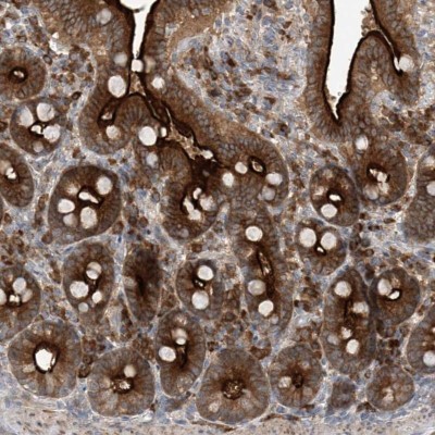 - Immunohistochemistry-Paraffin: KIAA1522 Antibody [NBP1-90915] - Staining of human duodenum shows strong cytoplasmic and membranous positivity in glandular cells.