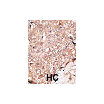 - Formalin-fixed and paraffin-embedded human cancer tissue reacted with the primary antibody, which was peroxidase-conjugated to the secondary antibody, followed by DAB staining. This data demonstrates the use of this antibody for immunohistochemistry; clinical relevance has not been evaluated. BC = breast carcinoma; HC = hepatocarcinoma.