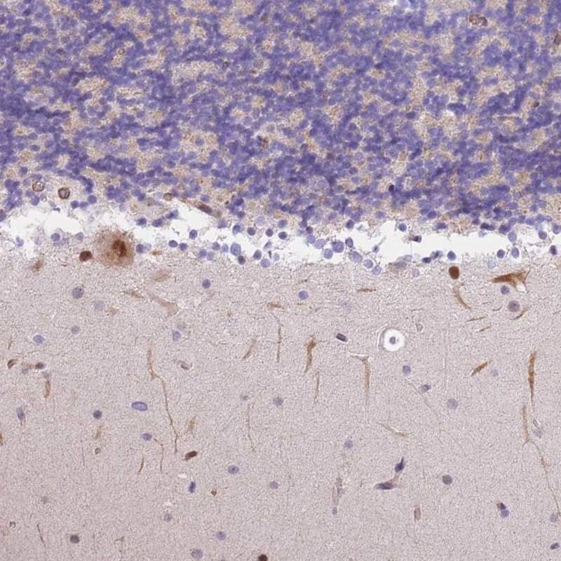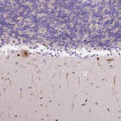 - Immunohistochemical staining of S100PBP in human cerebellum using a S100PBP Polyclonal Antibody (Product # PA5-55555) shows moderate nuclear and cytoplasmic positivity in Purkinje cells.
