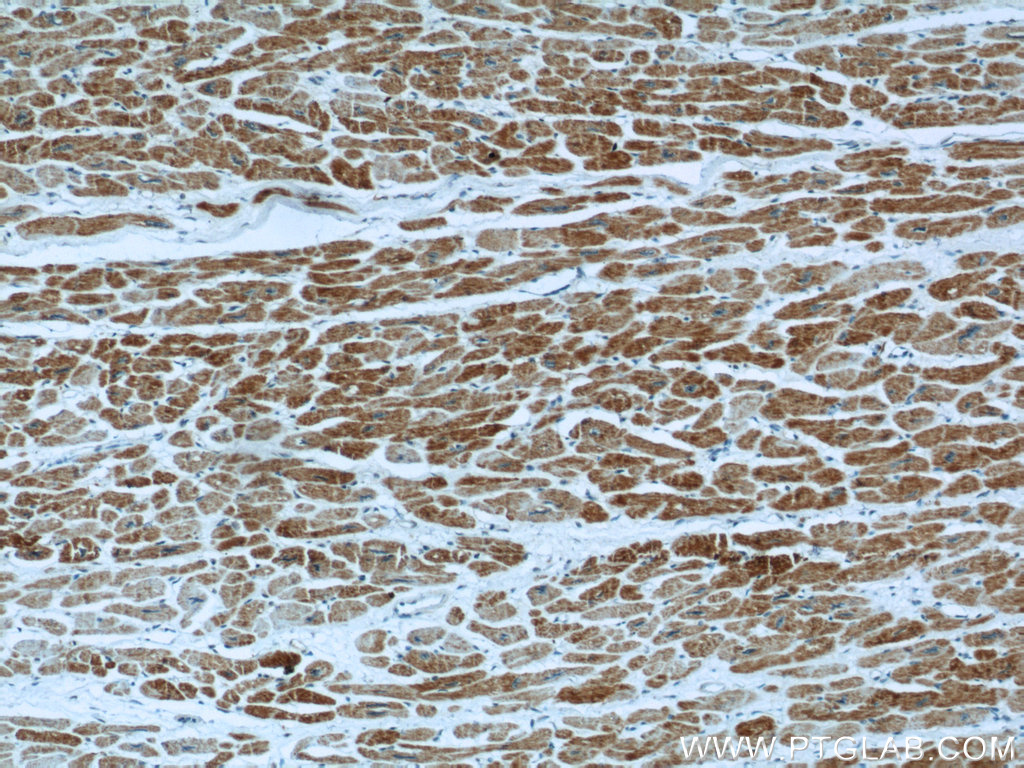 - Immunohistochemical of paraffin-embedded human heart using 55259-1-AP(VDAC1 antibody) at dilution of 1:50 (under 10x lens)