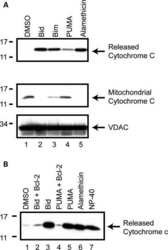 - PA1-954A detects voltage-dependent anion channel (VDAC) from human, non-human primates, mouse, and rat samples. PA1-954A has been successfully used in IF/ICC, IHC (P) and Western blot procedures. By Western blot, this antibody detects a single, prominent ~31 kDa band representing VDAC from rat heart extract. PA1-954A immunizing peptide corresponds to the C-terminal amino acid residues 185-197 of human VDAC3. This sequence is completely conserved between isoforms 1, 2 and 3 of human VDAC and PA1-954A detects endogenous levels of total VDAC. PA1-954A immunizing peptide (Cat. # PEP-082) is available for use in neutralization and control experiments.