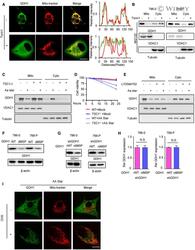 - 2 Figure The starvation of aa induces GDH1 translocation and reduces protein stability A 786-0 cells were subjected to aa starvation for the indicated times. The protein level of GDH1 was determined by WB using the indicated antibody. B The mRNA level of GDH1 in the cells in (A) was determined by qPCR using specific primers against GDH1 mRNA. C 786-0 cells were treated with or without aa starvation for 6 h and then treated with CHX (1 muM) for the indicated times. The protein level of GDH1 was determined by Western blotting (left), and the relative GDH1 protein levels were calculated (right). CHX: cycloheximide. Unpaired t -test was used. D Immunofluorescence (IF) assay was performed to determine the subcellular location of GDH1 with or without aa starvation. GDH1 localization was indicated by GDH1 antibody and MitoTracker (left). Signal intensities and distances were quantified (right). Scale bars: 20 mum. E Cytoplasm-mitochondrial fractionation assay was performed to determine the subcellular location of GDH1 with or without aa starvation. The fractionation efficiency and GDH1 location were determined by WB using antibodies against VDAC1 (mitochondrial membrane marker) and GDH1. Tubulin was used as loading control. F The total GDH1 protein in 786-0 and 769-P cells with or without aa starvation for 12 h was measured by WB. G Immunofluorescence (IF) assay was performed to determine the subcellular location of WT or mitochondrial signal peptide deleted (dMSP) GDH1. GDH1 locali