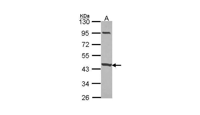 - Sample (30 ug of whole cell lysate) A: JurKat 10% SDS PAGE CCDC83 antibody OAGA00466 diluted at 1:1000