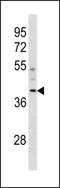 - CCDC83 Antibody (N-term) (Cat. #AP20387a) western blot analysis in human placenta tissue lysates (35ug/lane).This demonstrates the CCDC83 antibody detected the CCDC83 protein (arrow).