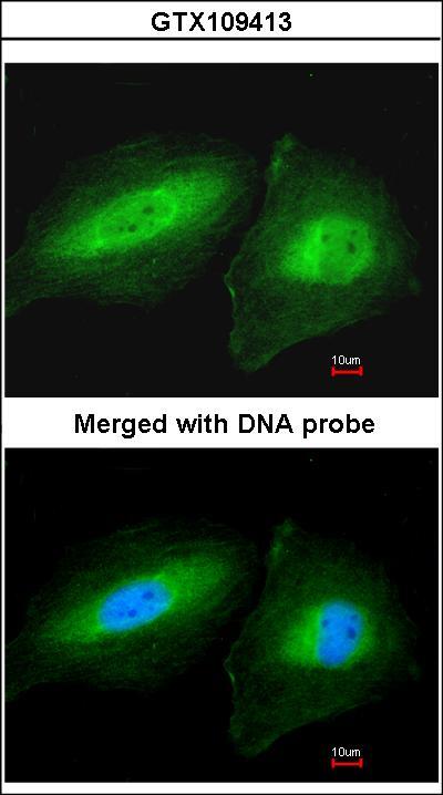 - Immunofluorescence of paraformaldehyde-fixed HeLa using CCDC83 antibody at 1:200 dilution.