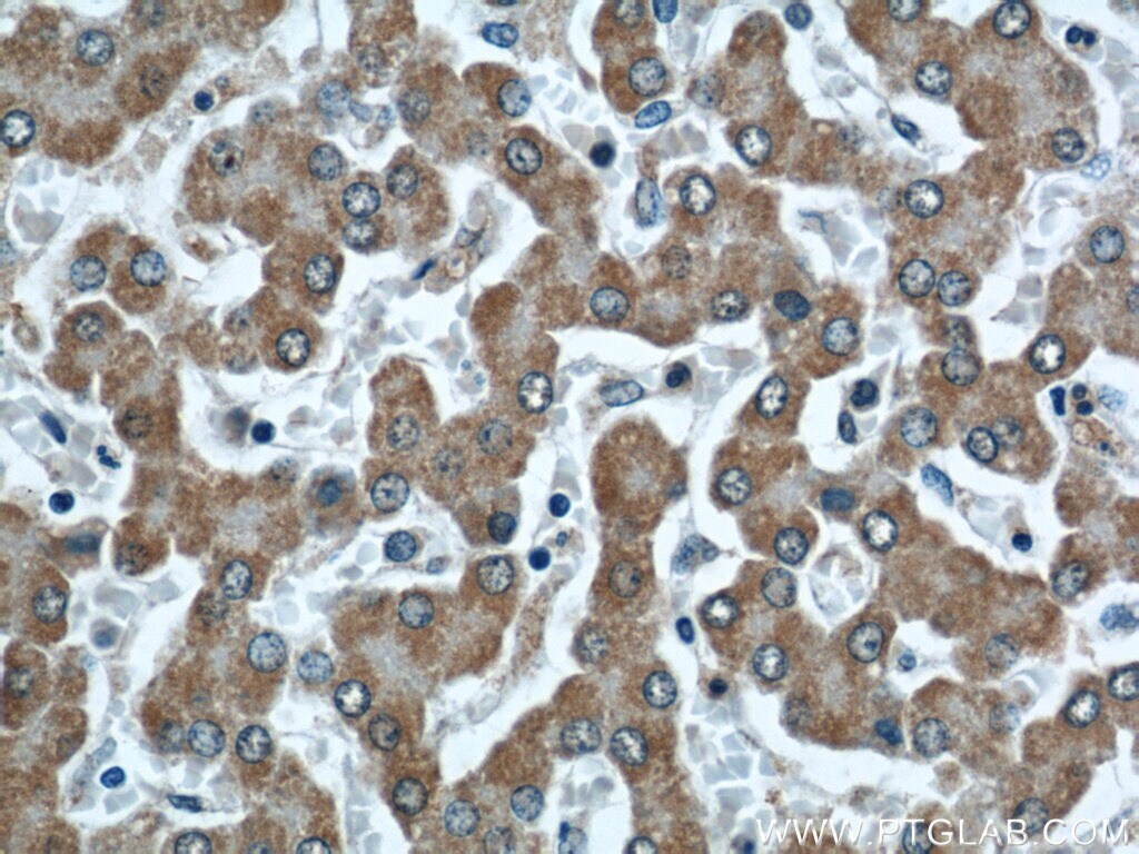 - Immunohistochemistry of paraffin-embedded human liver using 22268-1-AP (VAMP7/TI-VAMP antibody) at dilution of 1:50 (under 40x lens).