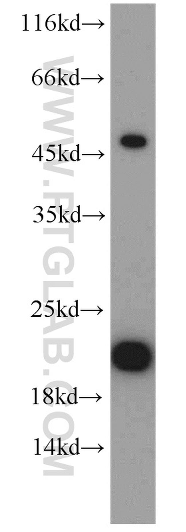 - Mouse liver tissue were subjected to SDS PAGE followed by western blot with 22268-1-AP (VAMP7/TI-VAMP antibody) at dilution of 1:1000 incubated at room temperature for 1.5 hours.