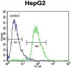 - CACNA2D3 Antibody (C-term) (Cat. #AP50703PU-N) flow cytometric analysis of HepG2 cells (right histogram) compared to a negative control cell (left histogram).FITC-conjugated goat-anti-rabbit secondary antibodies were used for the analysis.