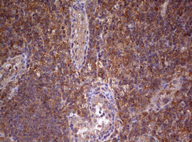 - Immunohistochemical staining of paraffin-embedded human lymphoma tissue using anti-ARL3 mouse monoclonal antibody. (Heat-induced epitope retrieval by 10mM citric buffer, pH6.0, 120°C for 3min, TA803087)