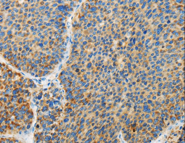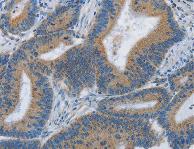 - Immunohistochemistry of paraffin-embedded Human colon cancer using ARHGEF3 Polyclonal Antibody at dilution of 1:25.
