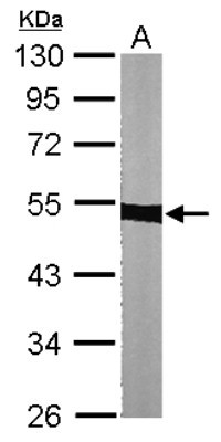 - Western Blot: Tubulin alpha-1B Antibody [NBP1-32959] - Sample (30 ug of whole cell lysate) A: Hela 10% SDS PAGE; antibody diluted at 1:1000.